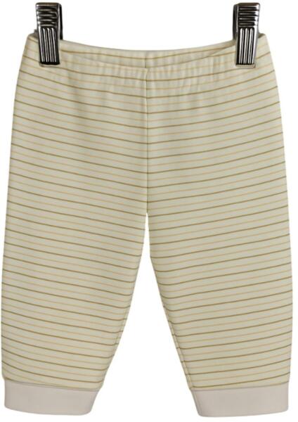 A puha, 100% pamutból készült babanadrág maximális kényelmet biztosít a baba számára. Puha, rugalmas derékpánttal rendelkezik, amely nem szorít, a lábszárán lévő foltok pedig biztosítják, hogy a nadrág jól a helyén maradjon, és védi a lábakat a hidegtől. A semleges színek könnyen kombinálhatók más ruhákkal, és fiúknak és lányoknak egyaránt alkalmasak.